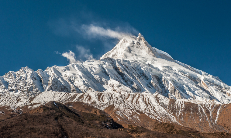 마나슬루는 네팔의 히말라야 산맥에 위치한 해발 8,163m의 산입니다. "마나슬루"는 "영혼의 땅"을 의미하는 산스크리트어입니다.